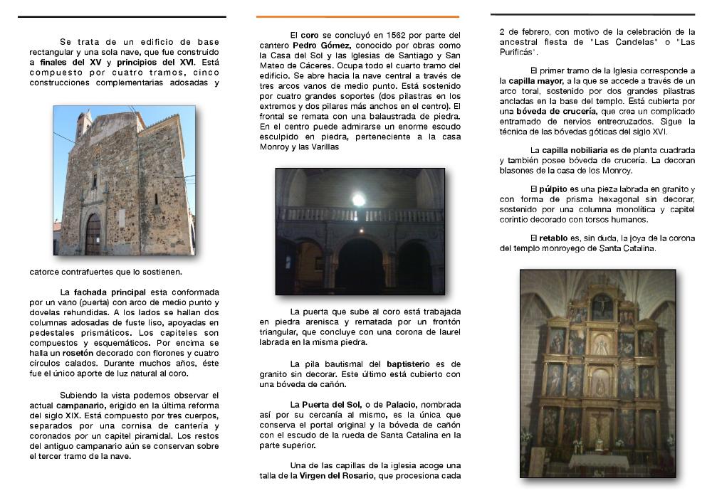 La iglesia parroquial de Santa Catalina es un edificio rectangular de arte renacentista, construido entre finales del siglo XV y XVI. Es de planta única y está compuesta por cuatro tramos, cinco construcciones complementarias y catorce contrafuertes.