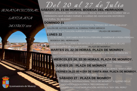 Como cada año Monroy celebra su semana cultural durante la semana del 26 de Julio, día especial para todos los monroyegos y monroyegas ya que es el...